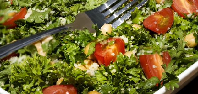 - نضع ضمتي البقدونس بعد فرمهما جيّداً إلى قطعٍ متناهية الصغر في وعاءٍ عميق، وثمّ نضيف إليها النعناع المفروم والبندورة المفرومة، والبصل المفروم، ونُضيف للمزيج السابق أيضا البرغل بعد غسله على حدة جيّداً، ونقوم بتحريك وخلط هذه المكوّنات السابقة بشكلٍ جيّدٍ ومتواصل.